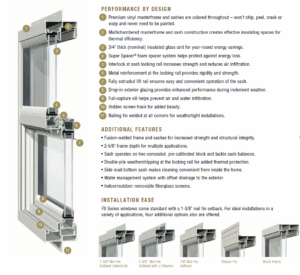 - 3/4″ thick insulated glass unit with optimal air space improves thermal performance.